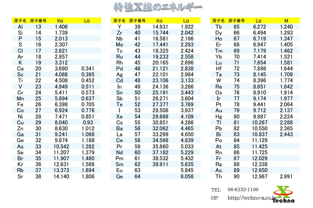 其能量和該原子的原子序及其變遷之兩軌道層有關。由n層軌道到m層軌道所產生之特性X射線的能量可寫成